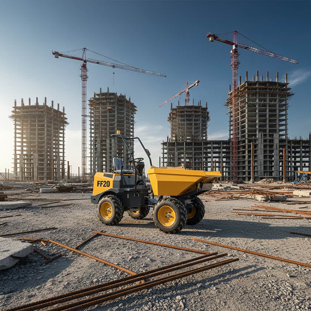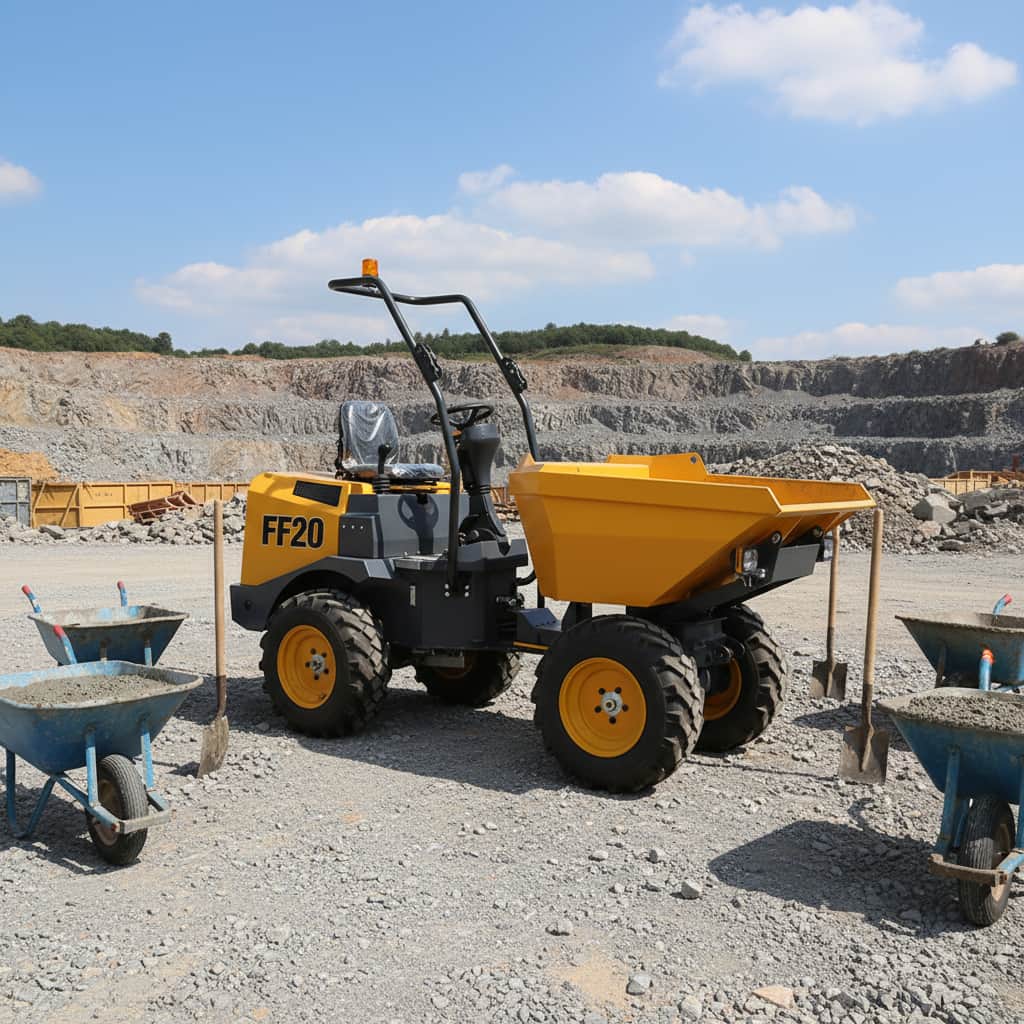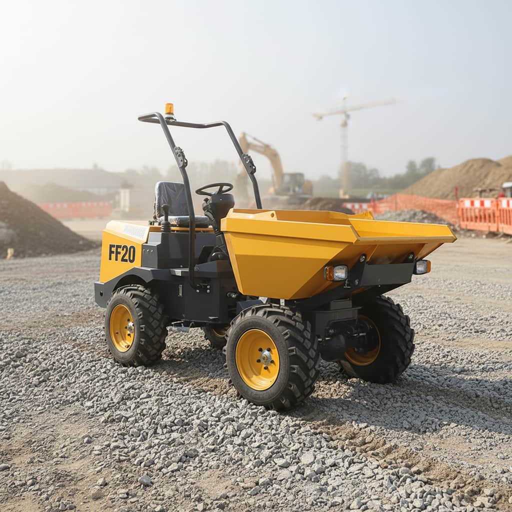 The FF20 Site Dumper is a compact and efficient construction transport vehicle designed for construction sites, mining areas, and small-scale earthmoving operations. Its robust structure and maneuverability allow it to easily navigate narrow or complex terrain.