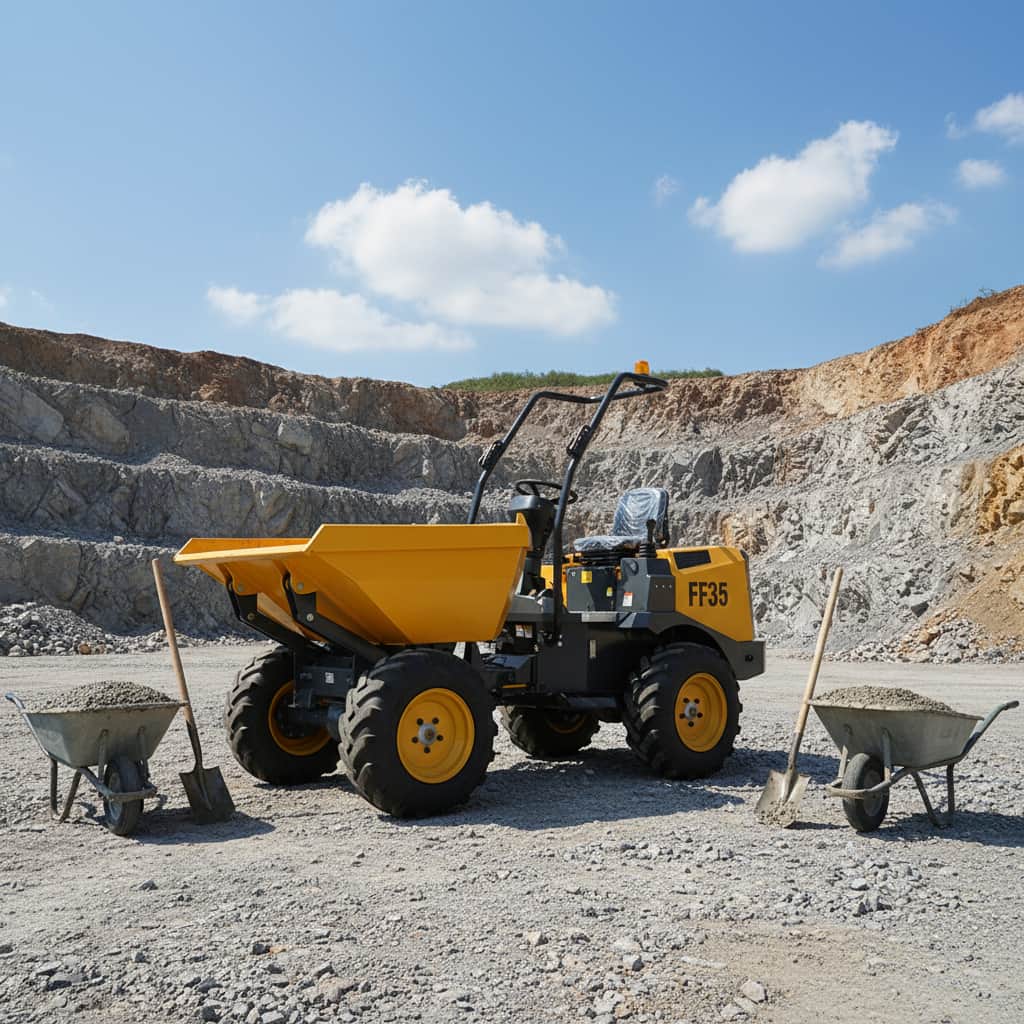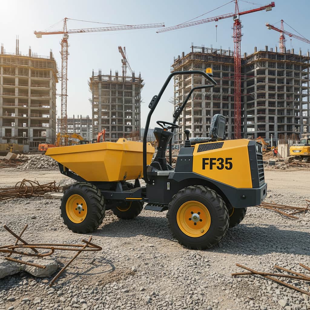 The FF35 Site Dumper is a compact and efficient construction transport vehicle designed for construction sites, mining areas, and small-scale earthmoving operations. Its robust structure and maneuverability allow it to easily navigate narrow or complex terrain.