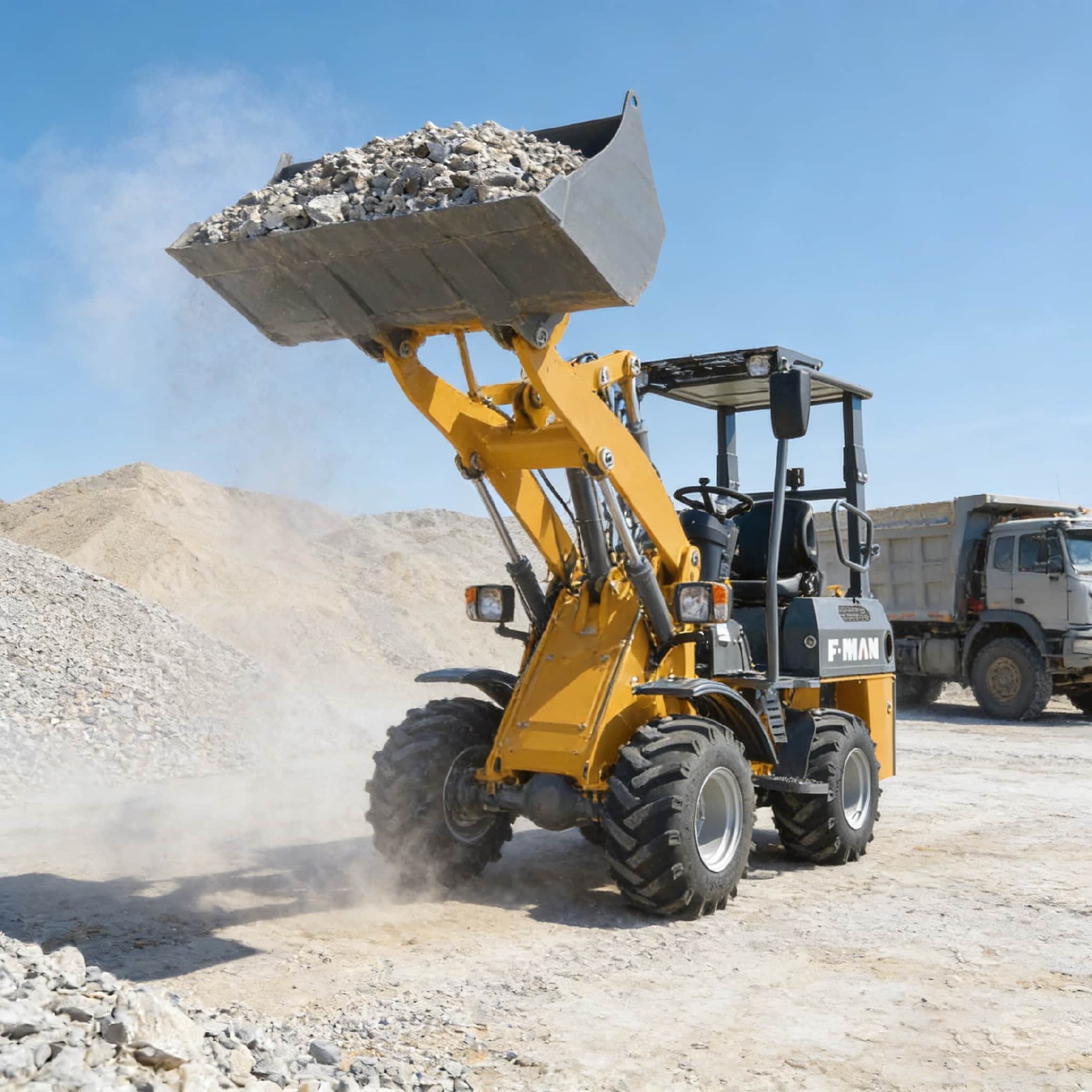 The FM907S European version wheel loader is a compact and flexible loading equipment suitable for urban construction, landscaping, agricultural operations, and light industrial applications. Its small footprint and agile steering make it particularly suitable for confined job sites and spaces with limited access.