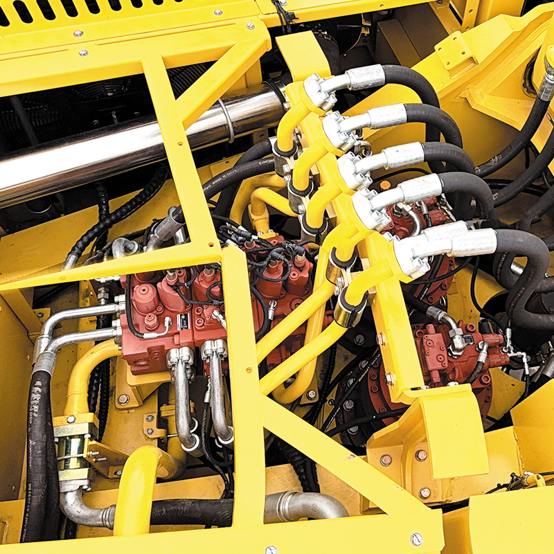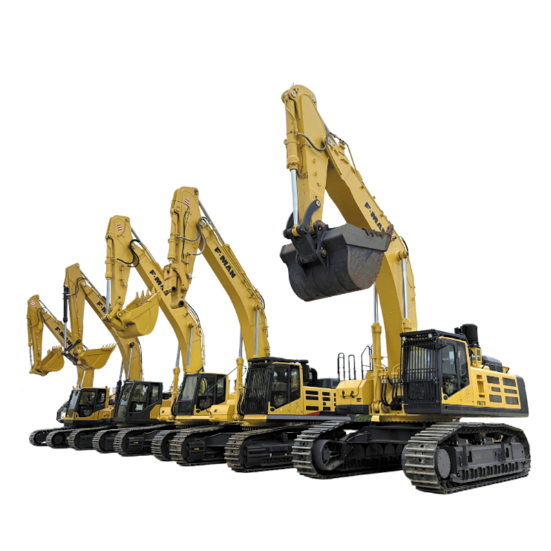 The FMAN FM378 Crawler Excavator weighs approximately 71.2 tons and is equipped with a Cummins engine. The QSX15 engine, rated at 354kW, delivers strong power and stable performance, meeting the high-intensity operational demands of large-scale mining, earthmoving projects, and large-scale infrastructure construction. The equipment utilizes an advanced hydraulic system equipped with a Kawasaki main pump, boasting a maximum flow rate of 360L/min x 2, ensuring high efficiency and responsive operation. The machine has a maximum digging height of 11165mm, a maximum digging depth of 7190mm, and a maximum digging radius of 11750mm. Equipped with a 4m³ standard bucket, it possesses powerful digging capabilities and loading efficiency. The robust and durable tracked chassis structure, combined with wide track design, ensures excellent stability and maneuverability even in complex terrain. The FM378, with its reliable structure, large operating range, and ample power, is suitable for mining, quarrying, and large-scale engineering construction, providing a highly efficient solution for heavy earthmoving operations.